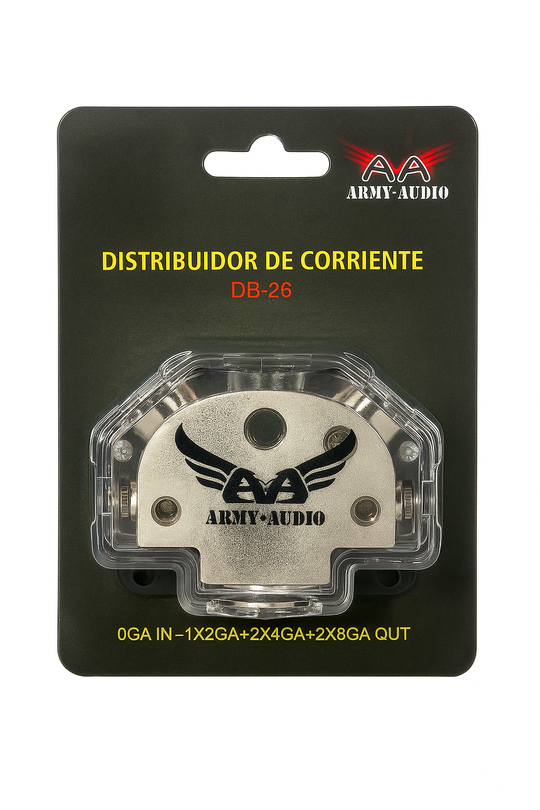 El Army Audio DB-26 es un bloque distribuidor de corriente diseñado para instalaciones de car-audio de alto rendimiento. Ideal para sistemas donde se requiere dividir eficazmente la alimentación principal hacia múltiples amplificadores o accesorios eléctricos, manteniendo...Precio regular $ 180.00Precio regular $ 180.00 -