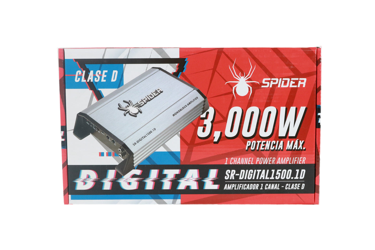 El Spider SR-DIGITAL1500.1D es un amplificador monoblock Clase D diseñado para entregar bajos potentes, controlados y eficientes. Forma parte de la serie Digital, destacando por su excelente relación tamaño-potencia, ideal para sistemas de subwoofer que buscan pegada real sin comprometer estabilidad eléctrica.