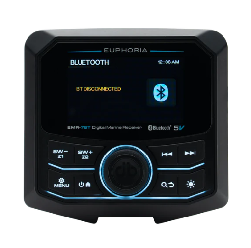 Receptor de medios digitales marinos diseñado para ofrecer conectividad avanzada, control total de audio y alta resistencia en ambientes marinos, UTV, cuatrimotos y vehículos recreativos.
