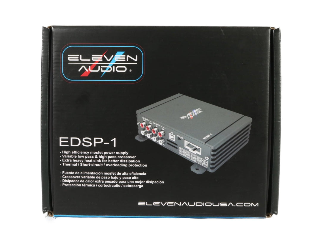El Eleven Audio EDSP-1 es un procesador compacto diseñado para mejorar la calidad del audio, proporcionando control de filtros, protección avanzada y una fuente de alimentación eficiente. Ideal para sistemas básicos o intermedios que necesitan mayor definición y manejo limpio de señal.