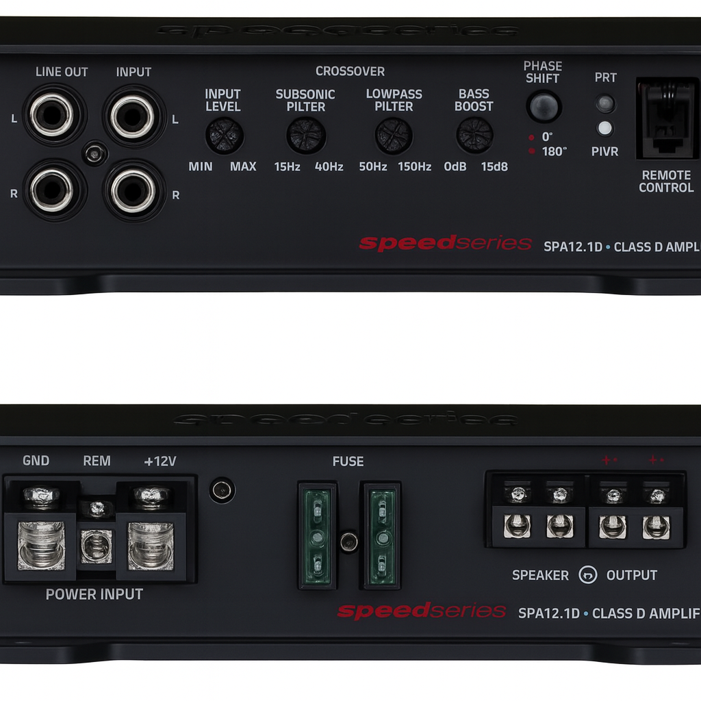 El DB Drive Speed Series SPA12.1D es un amplificador monoblock clase D diseñado para entregar fuerza, eficiencia y un control excepcional en subwoofers de alto rendimiento. Su plataforma Speed Series combina construcción compacta, excelente disipación y potencia estable a 1 ohm, ideal para sistemas SQL que buscan impacto, fidelidad y resistencia en uso diario.